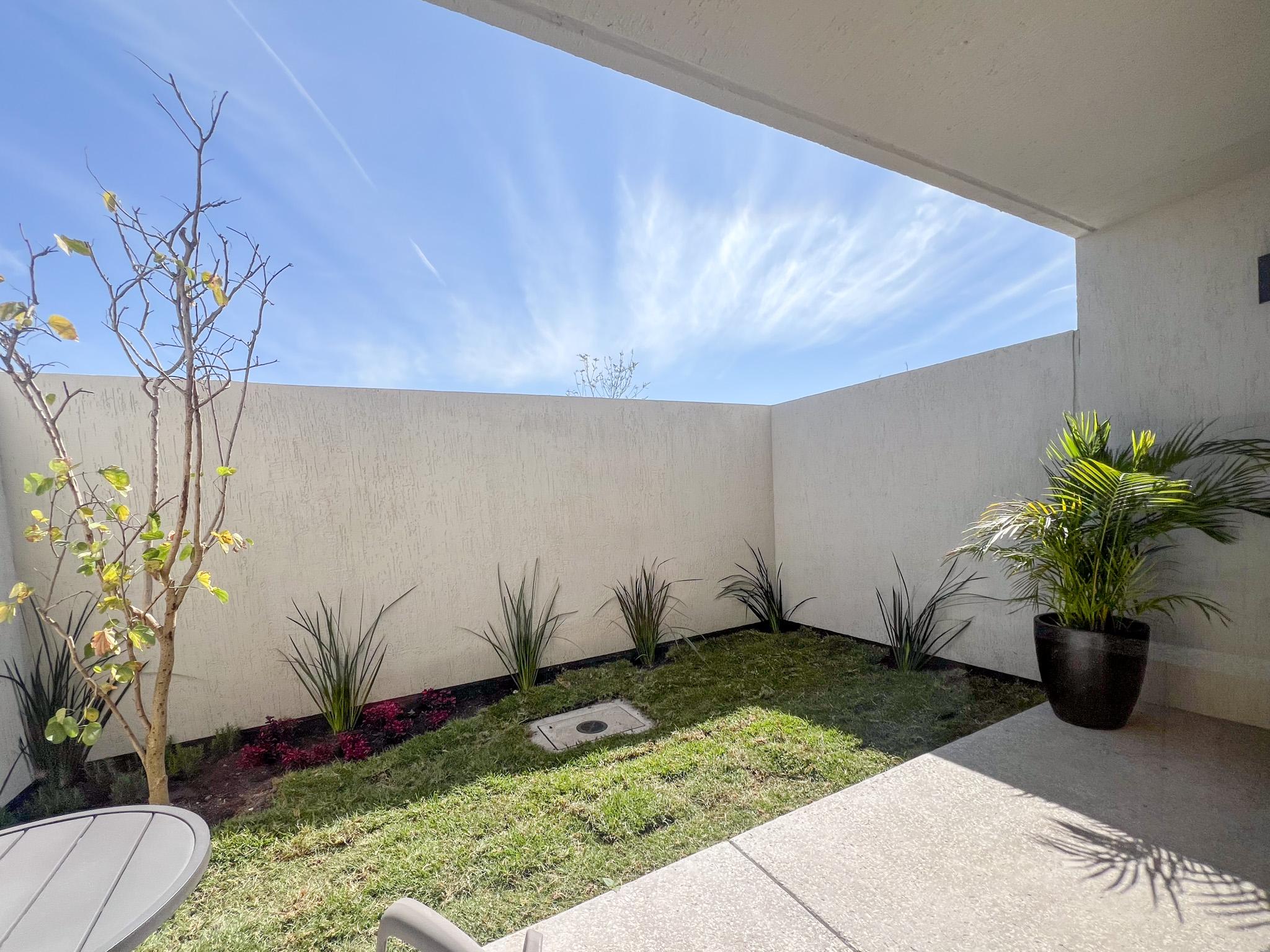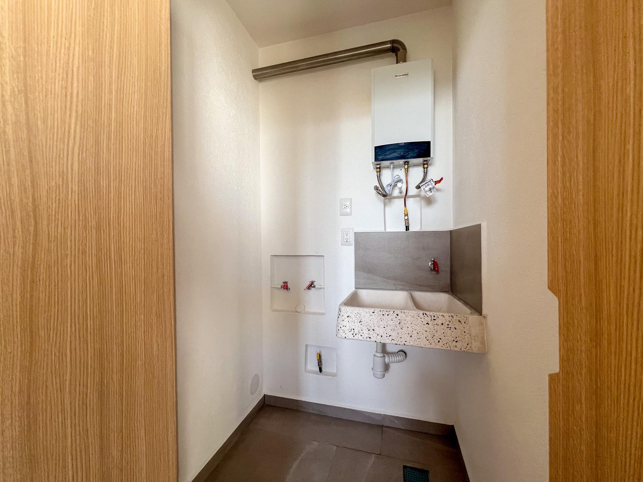 Área de lavado interior, terraza techada, dos lugares de estacionamiento y jardín privado.