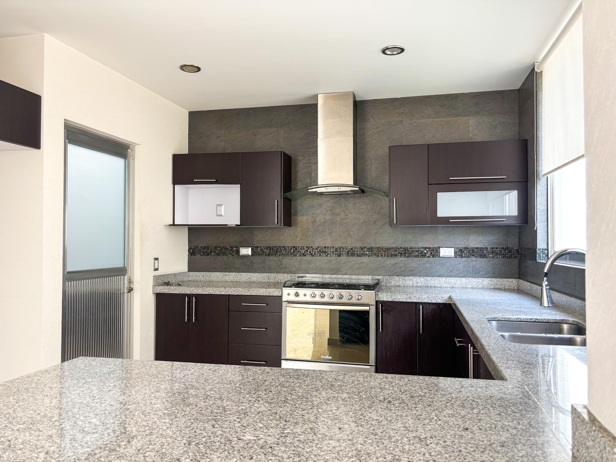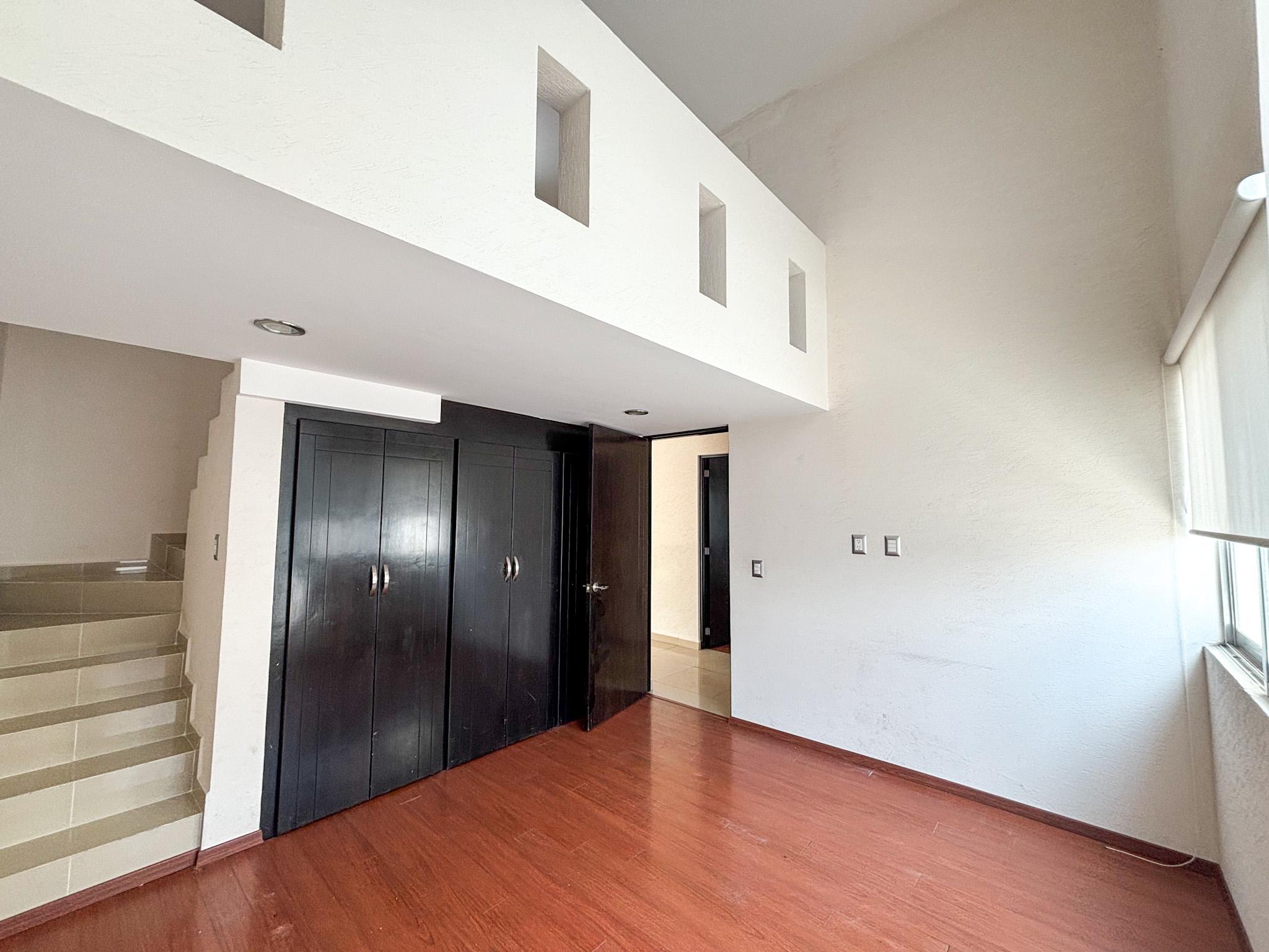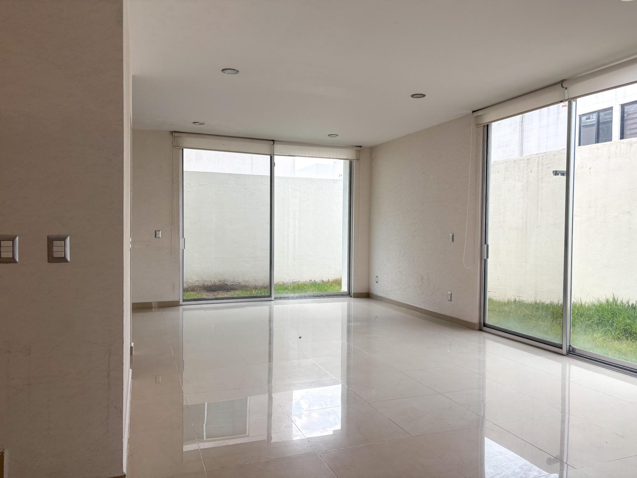 En renta la casa más grande del conjunto Dolce Terra con excedente de terreno y jardín lateral. Casa amplia y muy iluminada, de tres recámaras, la principal con vestidor. Cuenta con dos y medio baños con cancel de vidrio templado. La planta alta tiene sala de TV y espacio de estudio/oficina en Planta Baja.