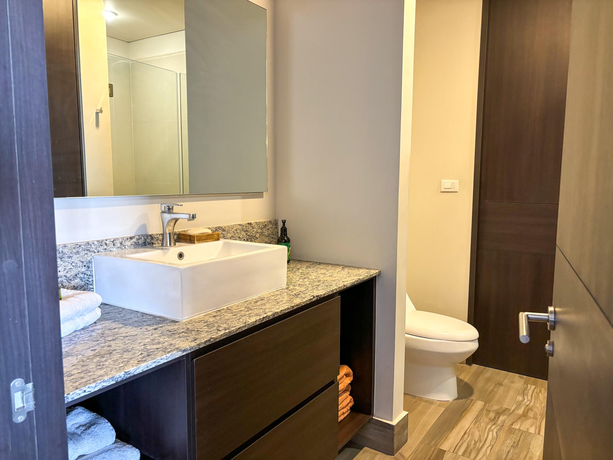 Tres recámaras, cada una con vestidor y baño completo con vistas a la ciudad más Estudio/Sala de TV, patio de lavado, cuarto de servicio con baño completo, una bodega y estacionamiento para tres coches.